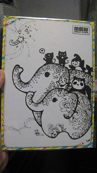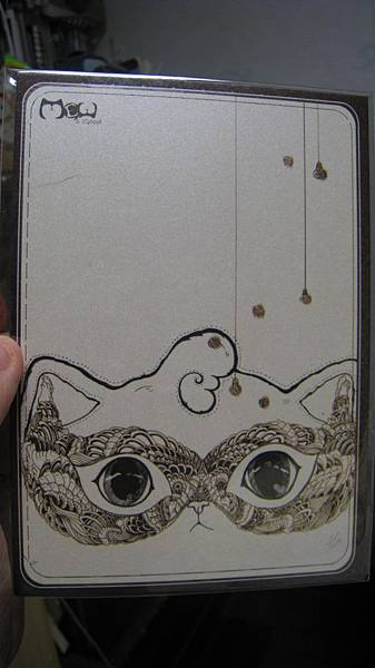 這是面具貓的背面,老闆說使用的是星幻紙喔!